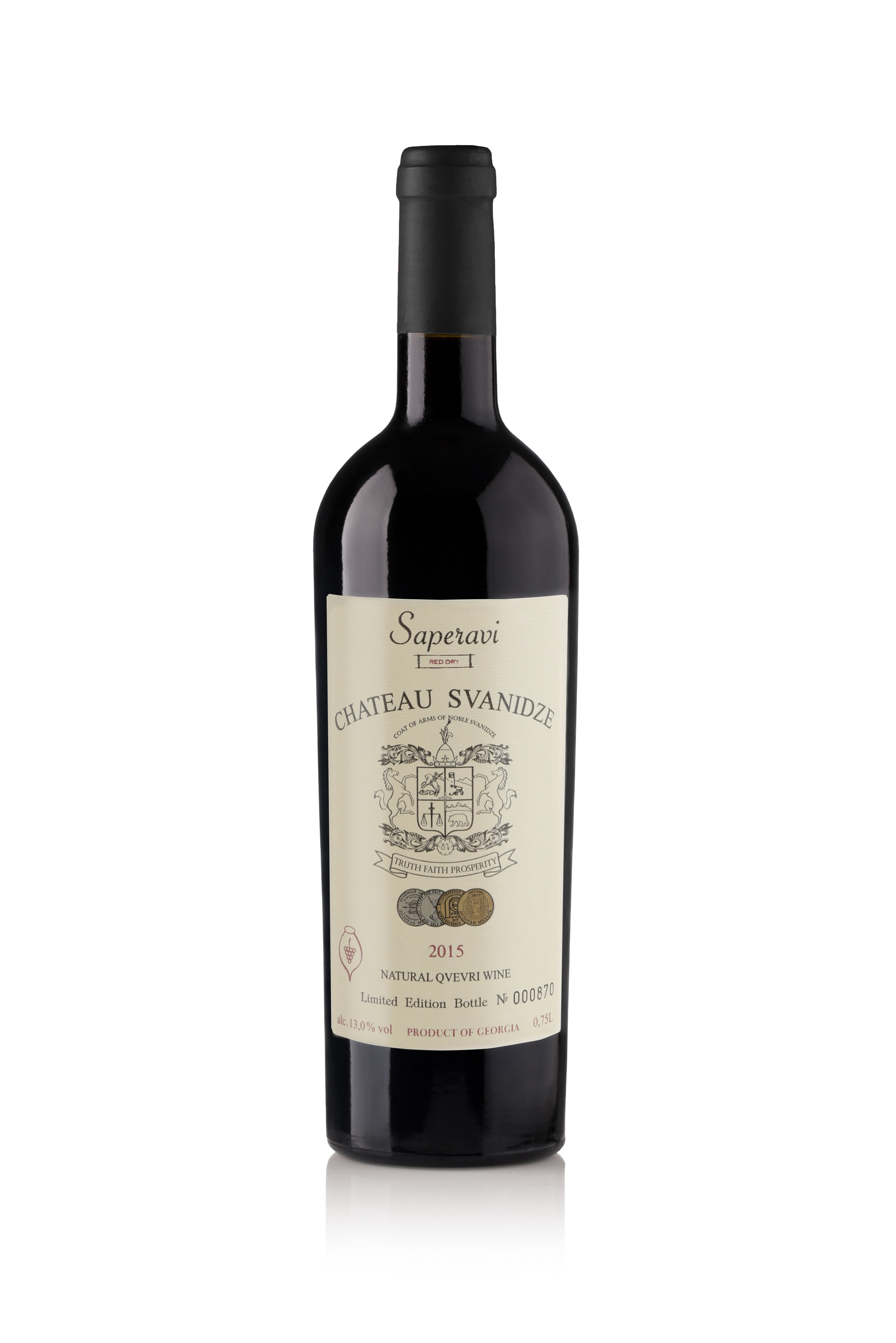 The vineyard is cultivated in Kakheti. The grapes are picked from a 40-year-old vineyard where a green harvest was held in August, which means removing excess bunches to improve the quality of the grapes left in the vine.